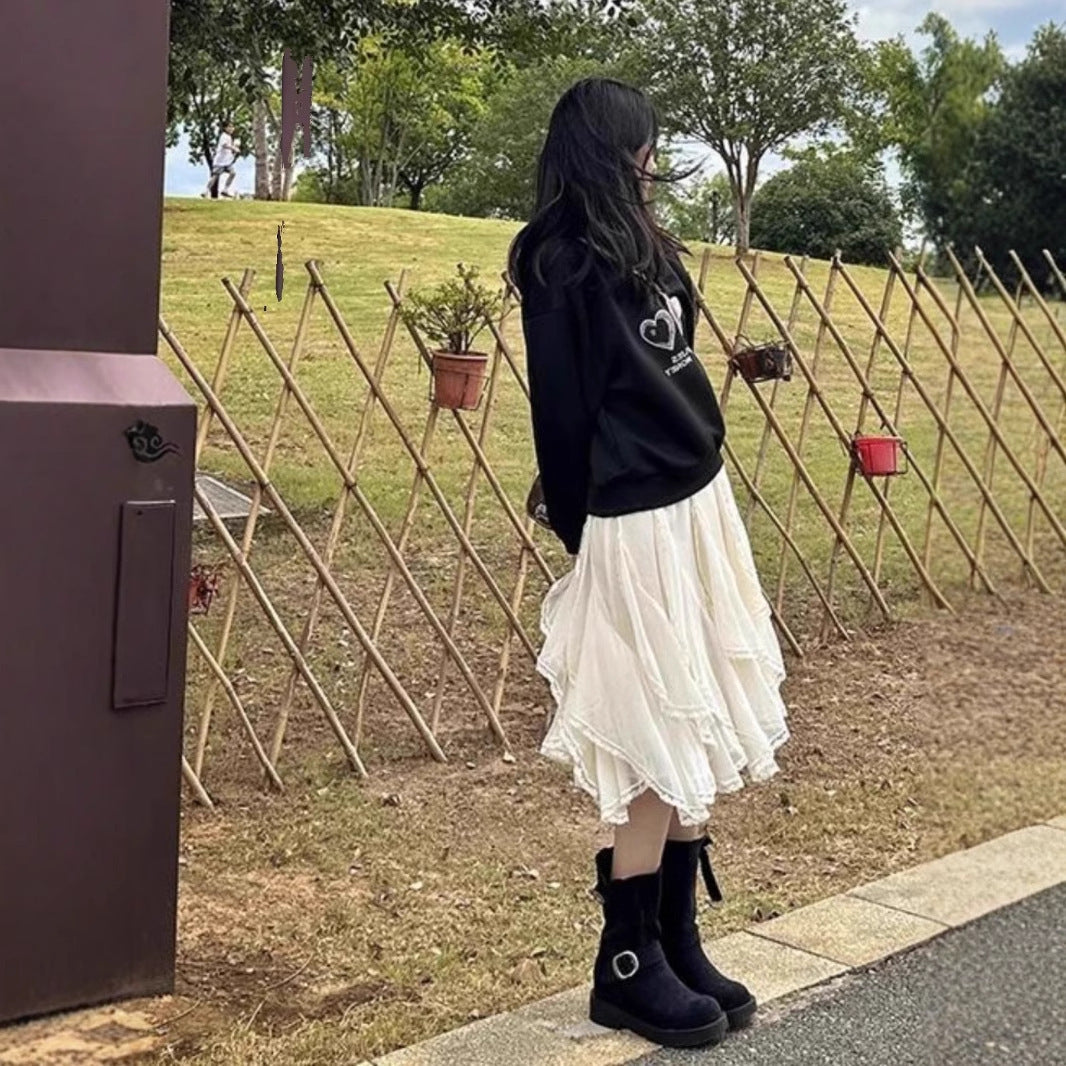 French Irregular Lace Patch High-waisted Slimming Tulle Skirt