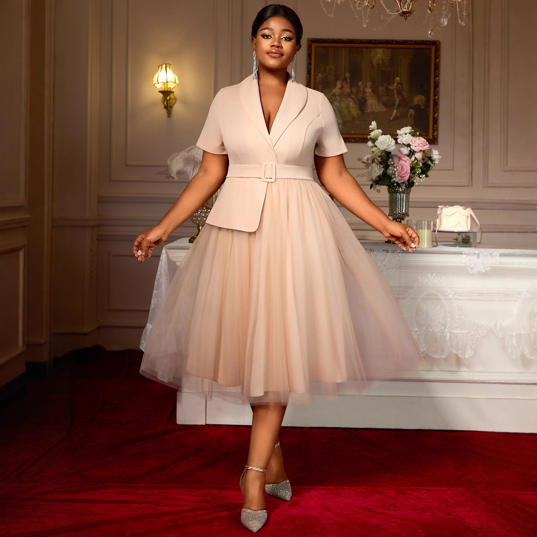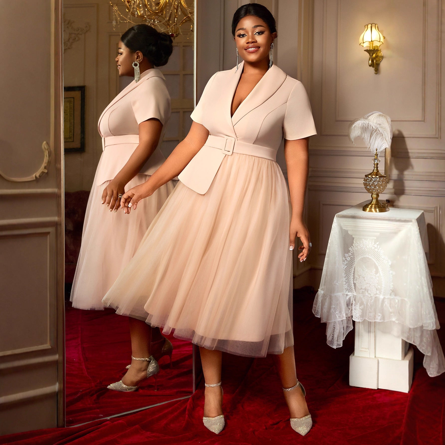 Slim Fit Slimming Suit Skirt Belt Mesh Dress