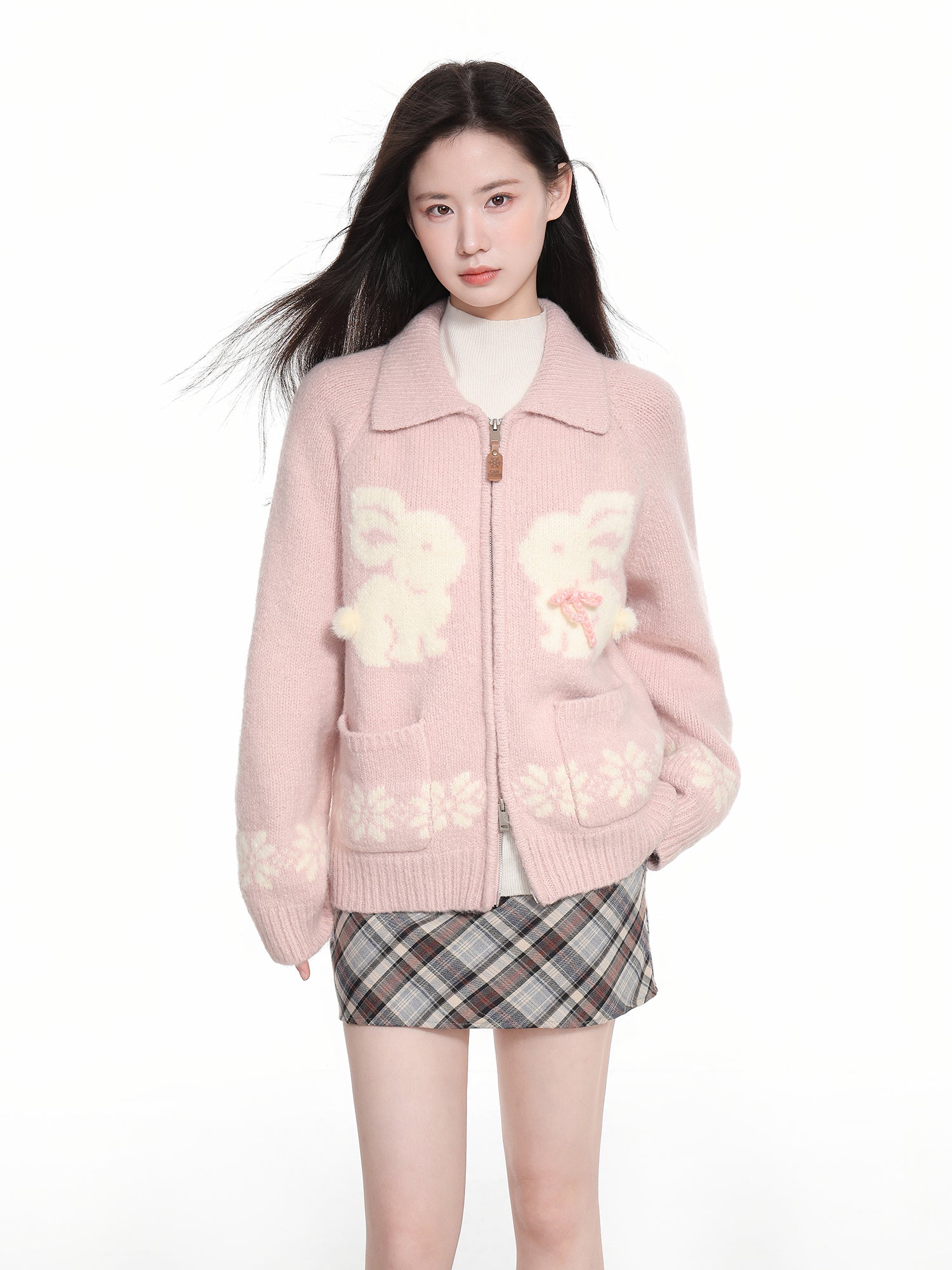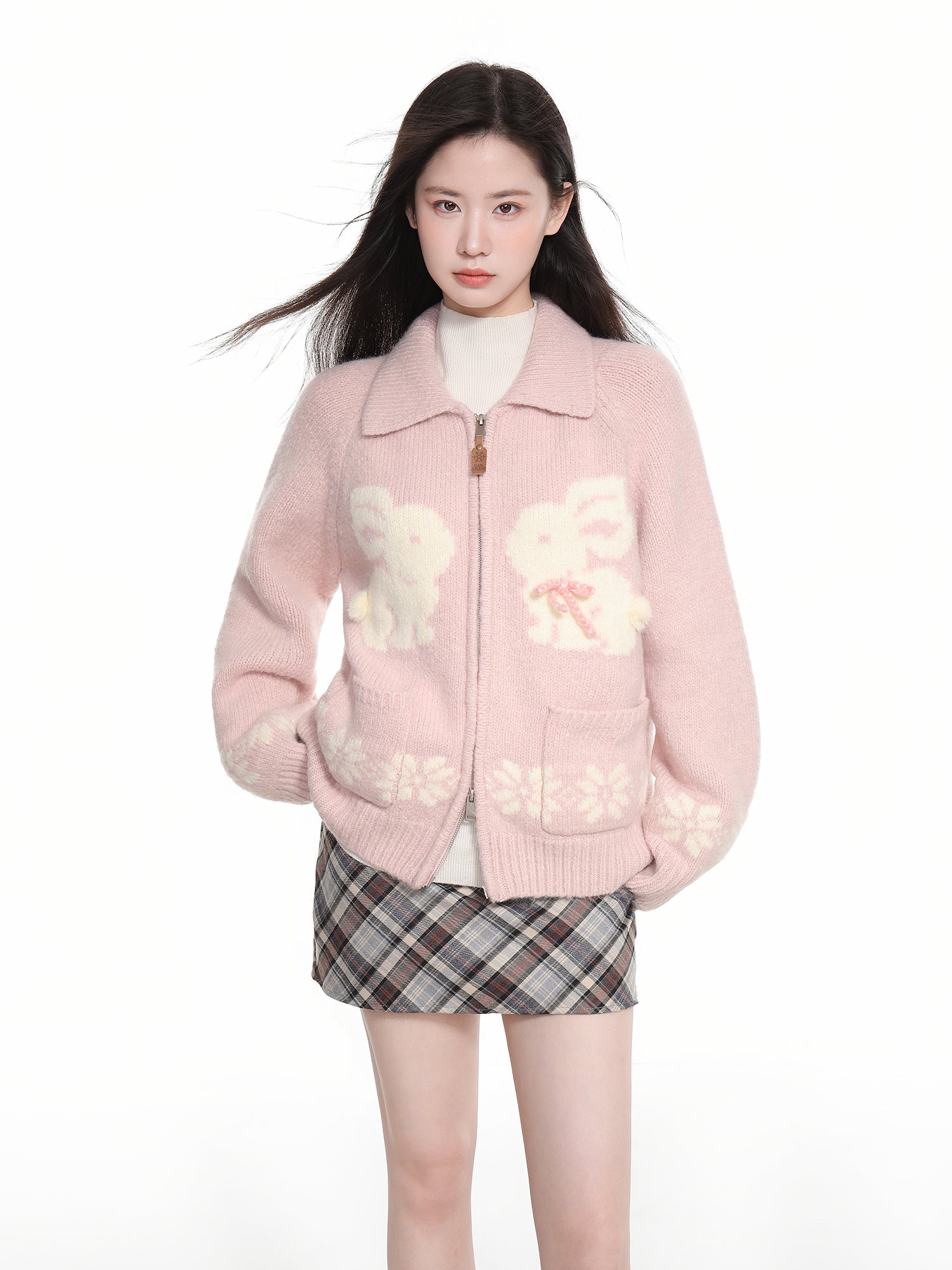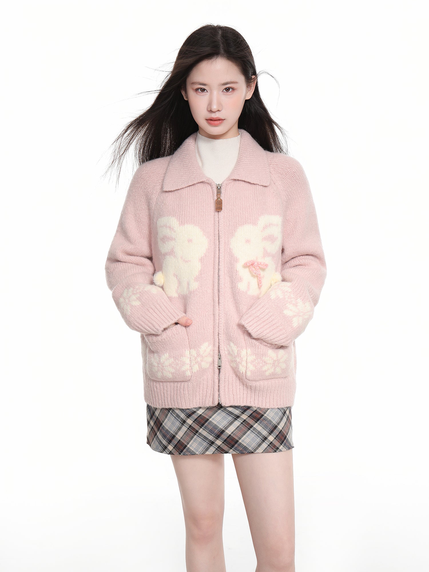 Women's Double Zipper Lapel Knitted Sweater Coat