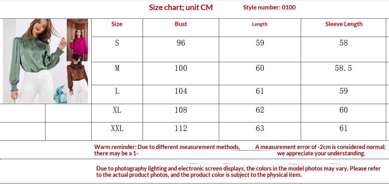 Women's Elegant Solid Color Round Neck Long Sleeve Tie Straight Shirt